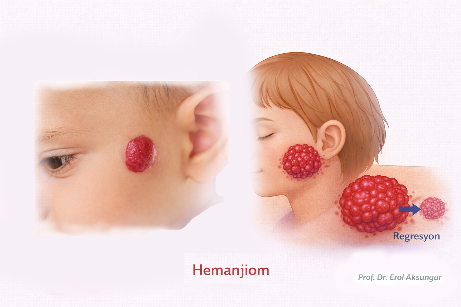 Hemanjiyomlar, genellikle bebeklik döneminde ortaya çıkan, iyi huylu damar tümörleridir. Ciltte kırmızı, mor veya mavi tonlarda bir lezyon şeklinde görülür. En sık ciltte yerleşmekle birlikte, mukozalarda veya iç organlarda da saptanabilir.