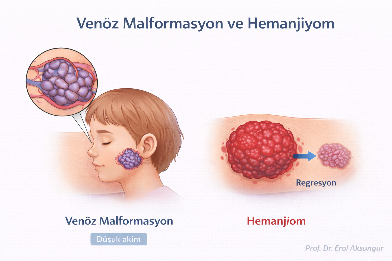 Venöz malformasyon ve hemanjiom, her ikisi de damarlarla ilişkili olmasına rağmen kökeni, seyri ve tedavi yaklaşımı tamamen farklı iki ayrı hastalıktır. Bu iki durumun doğru ayırt edilmesi, gereksiz veya yanlış tedavilerin önüne geçilmesi açısından büyük önem taşır.